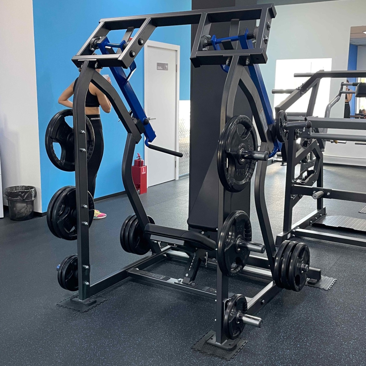 Количество хромированных накопителей для хранения свободных весов: восемь накопителей из толстостенной стальной трубы диаметром 48 мм. Максимальный вес на накопитель: 100 кг.