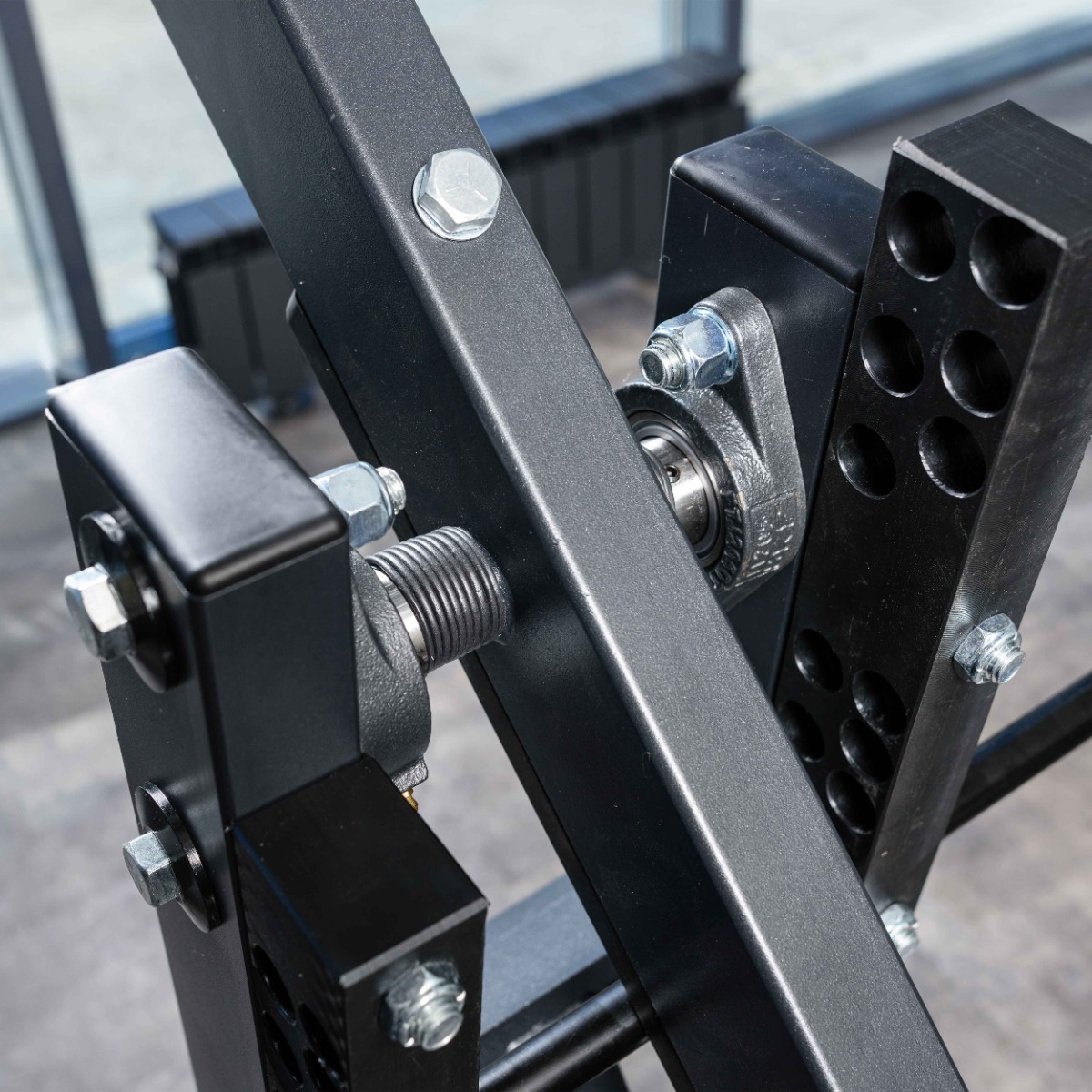 Отличительная черта тренажера – металлические фиксаторы рычагов длиной 350 мм для комфортного старта и безопасности спортсмена: фиксаторы позволяют закрепить рычаги в нужном положении, беспрепятственно занять исходное положение и завершить подход.