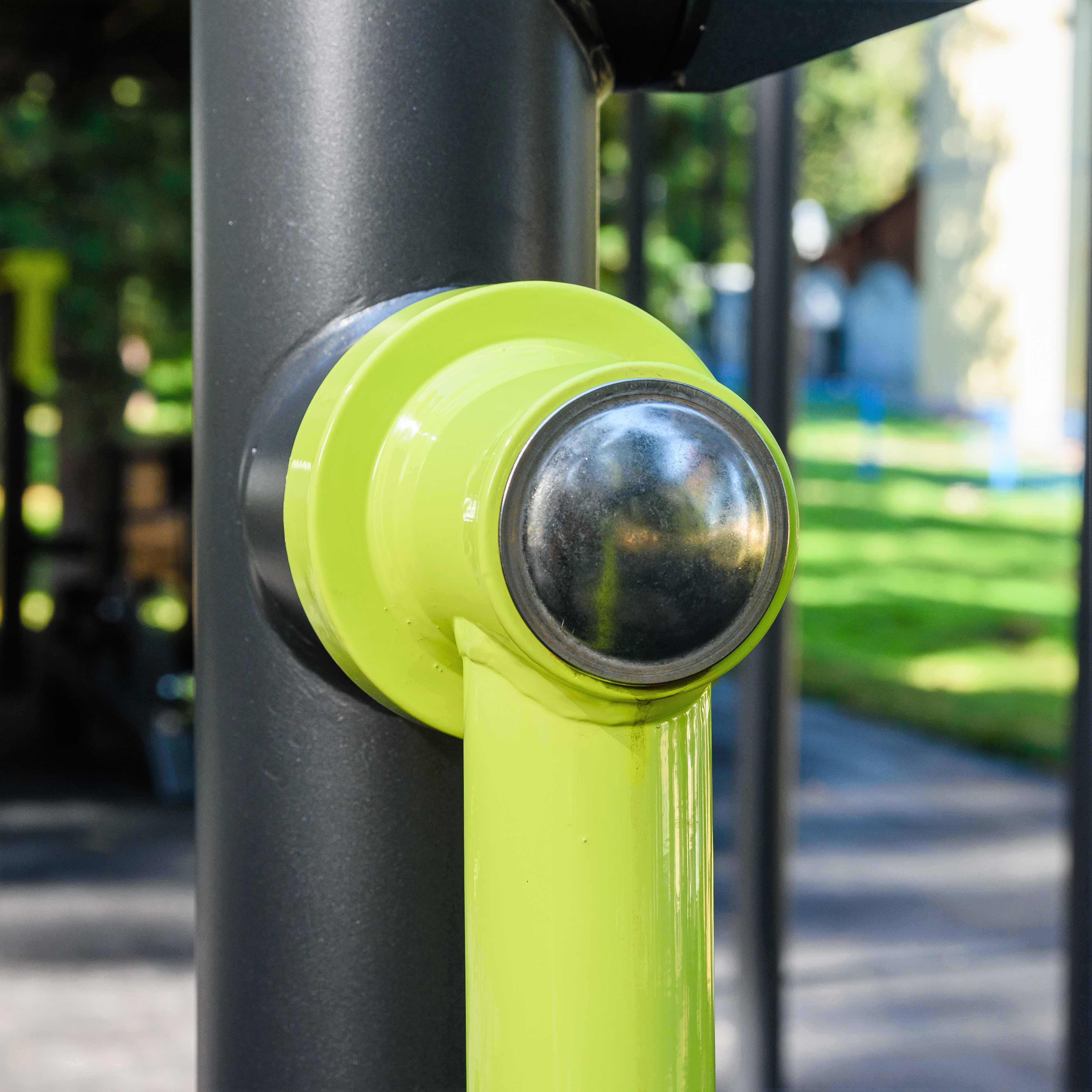 Механизм ограничения амплитуды движения с фиксированным углом хода 60° предотвращает чрезмерное отклонение рабочих рычагов, исключая возможность травмирования пользователя и снижая ударные нагрузки на конструкцию. Дополнительно выполняет функцию антивандальной защиты, исключая контакт подвижных элементов между собой.