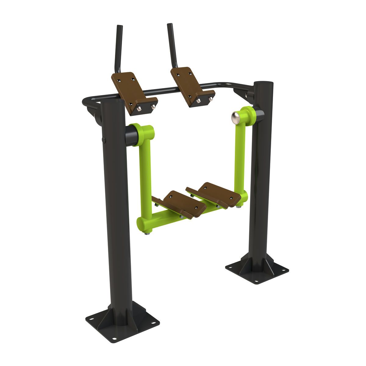 Механизм ограничения амплитуды движения с фиксированным углом хода 60° предотвращает чрезмерное отклонение рабочих рычагов, исключая возможность травмирования пользователя и снижая ударные нагрузки на конструкцию. Дополнительно выполняет функцию антивандальной защиты, исключая контакт подвижных элементов между собой.