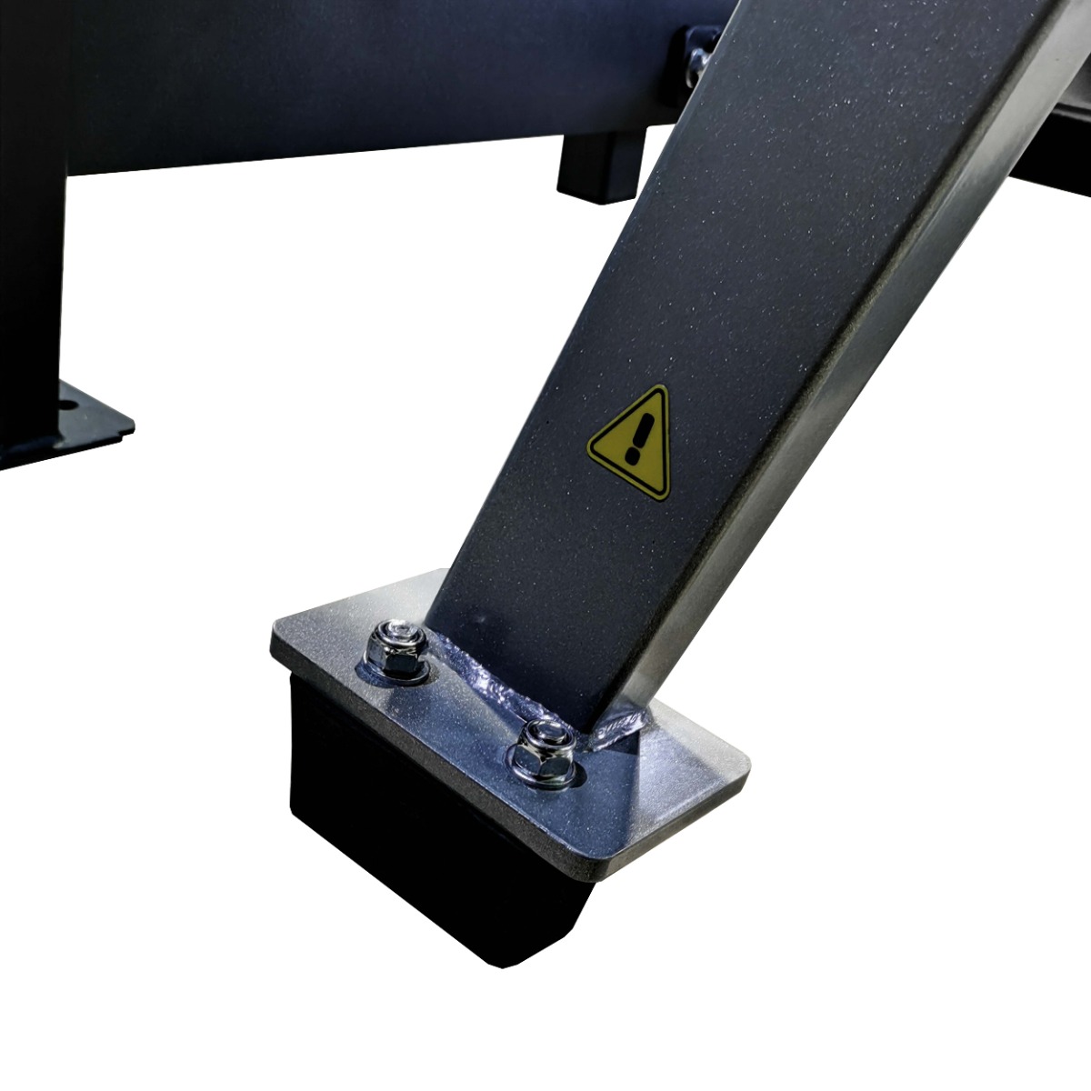 Тренажер имеет три опорные ножки из стального листа толщиной 5 мм с прорезями для надежного крепления к полу и резиновыми накладками для устойчивого положение и безопасности спортсмена.