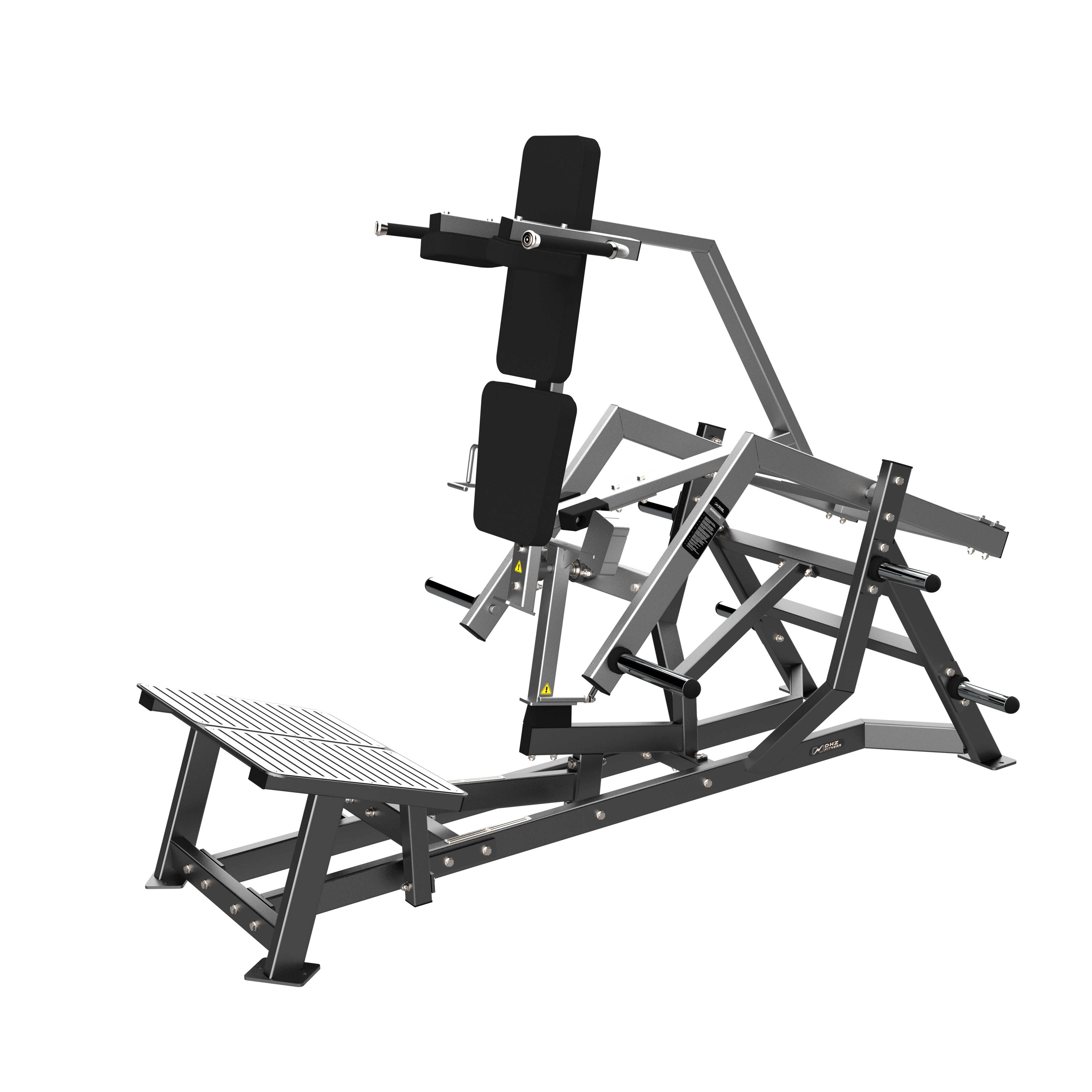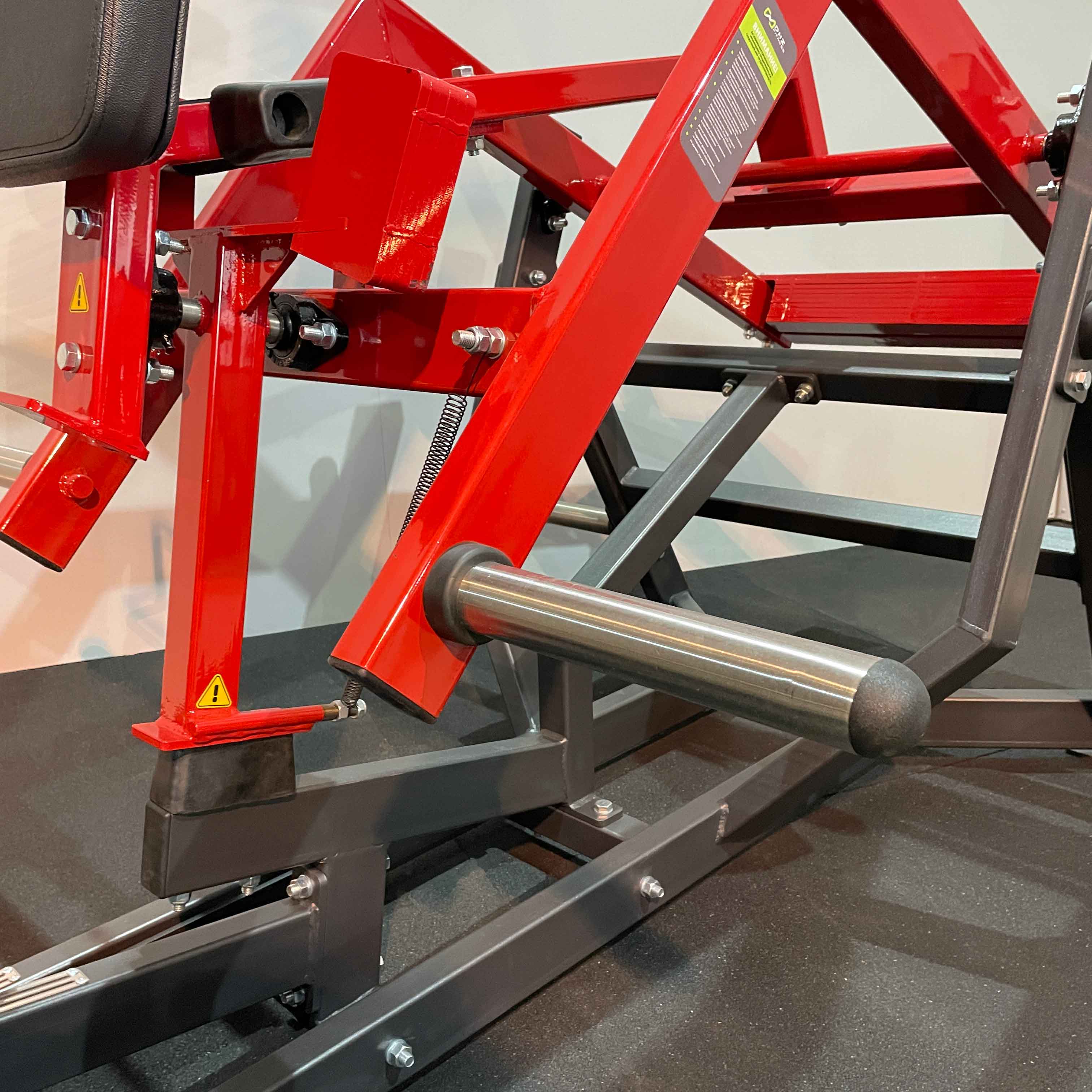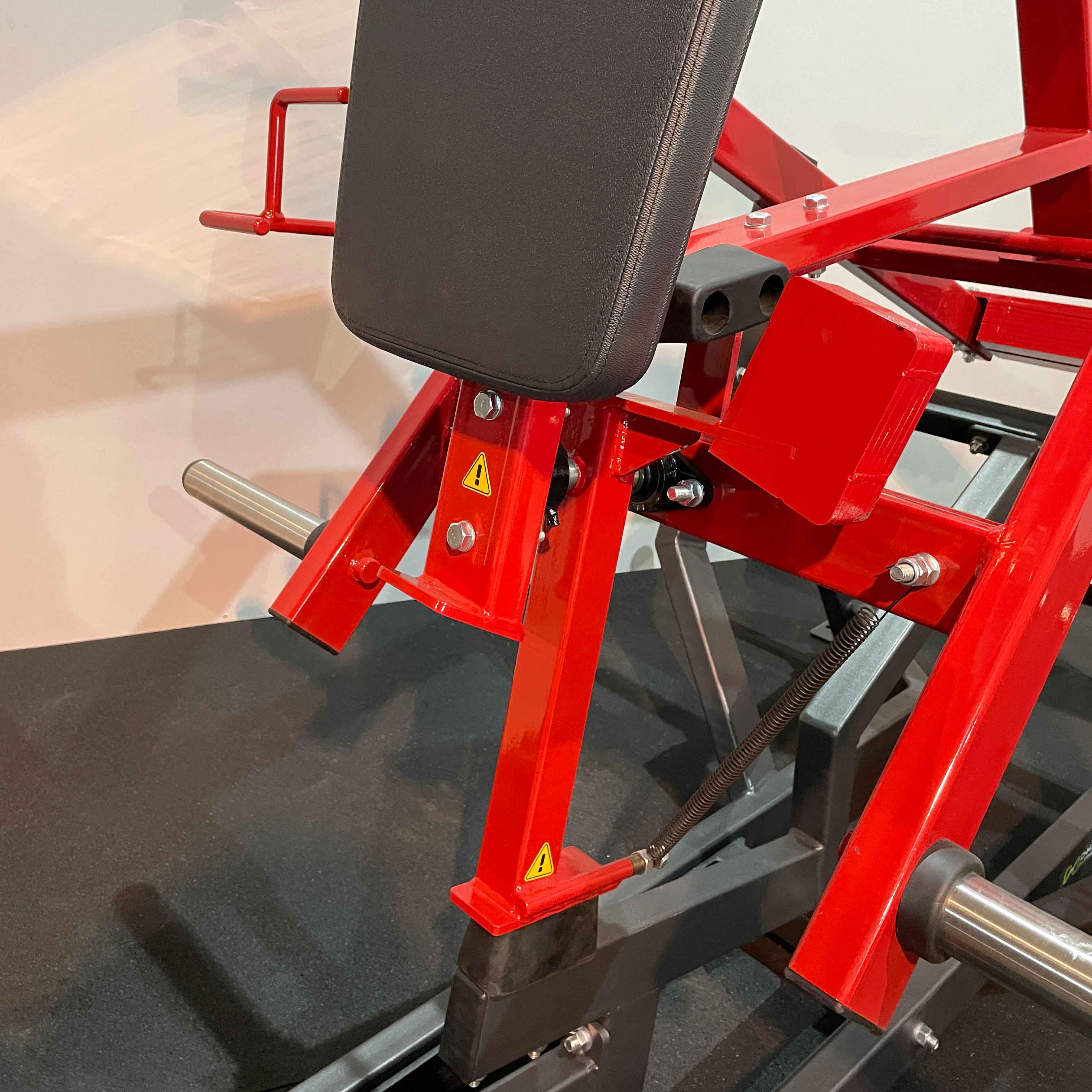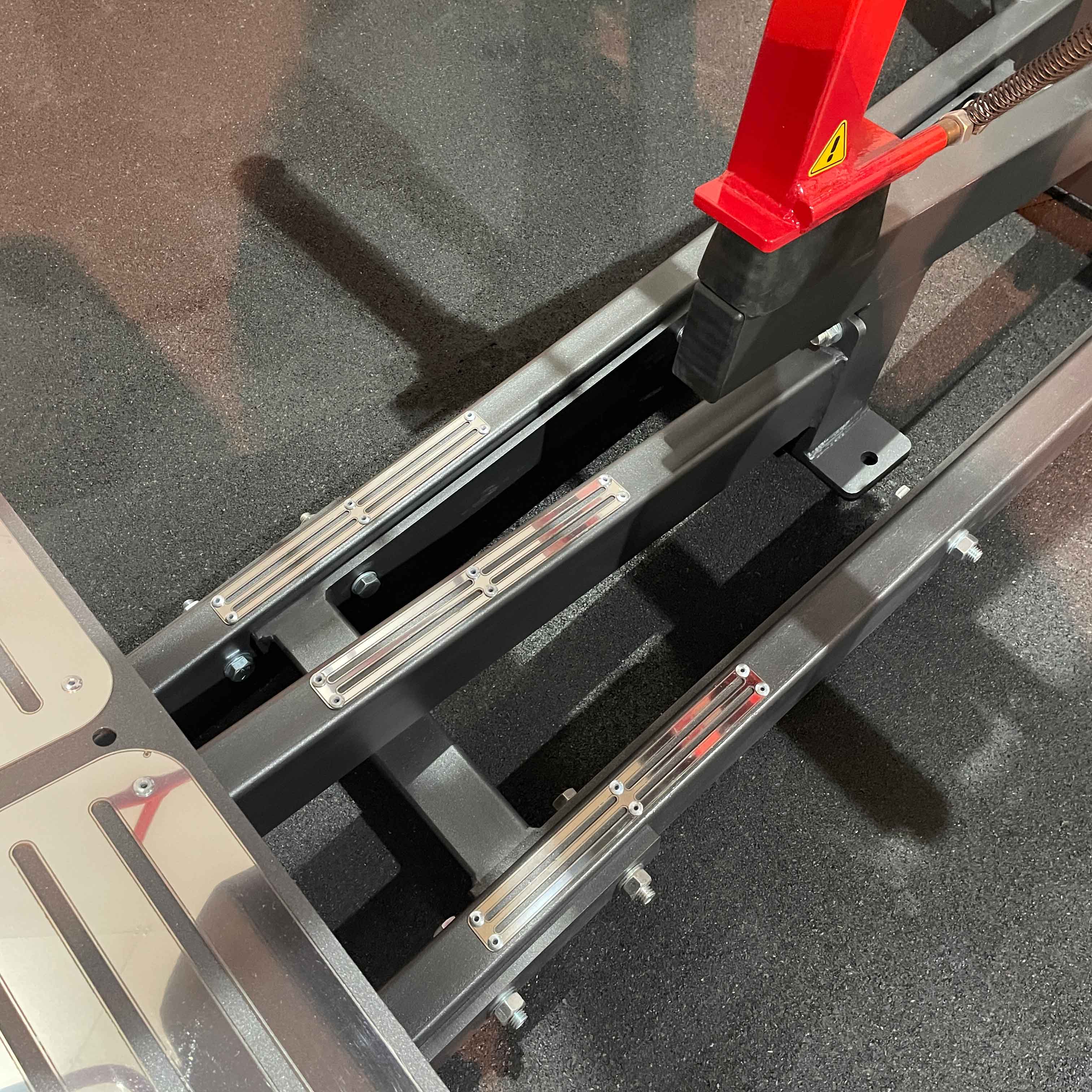 На раме и платформе для ног закреплены металлические рубчатые пластины для защиты тренажера от износа и спортсмена от скольжения при выполнении упражнения.