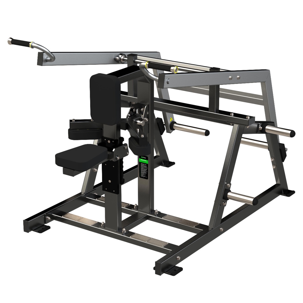 Тренажер имеет четыре опорные ножки из стального листа толщиной 5 мм с прорезями для надежного крепления к полу и резиновыми накладками для устойчивого положение и безопасности спортсмена.