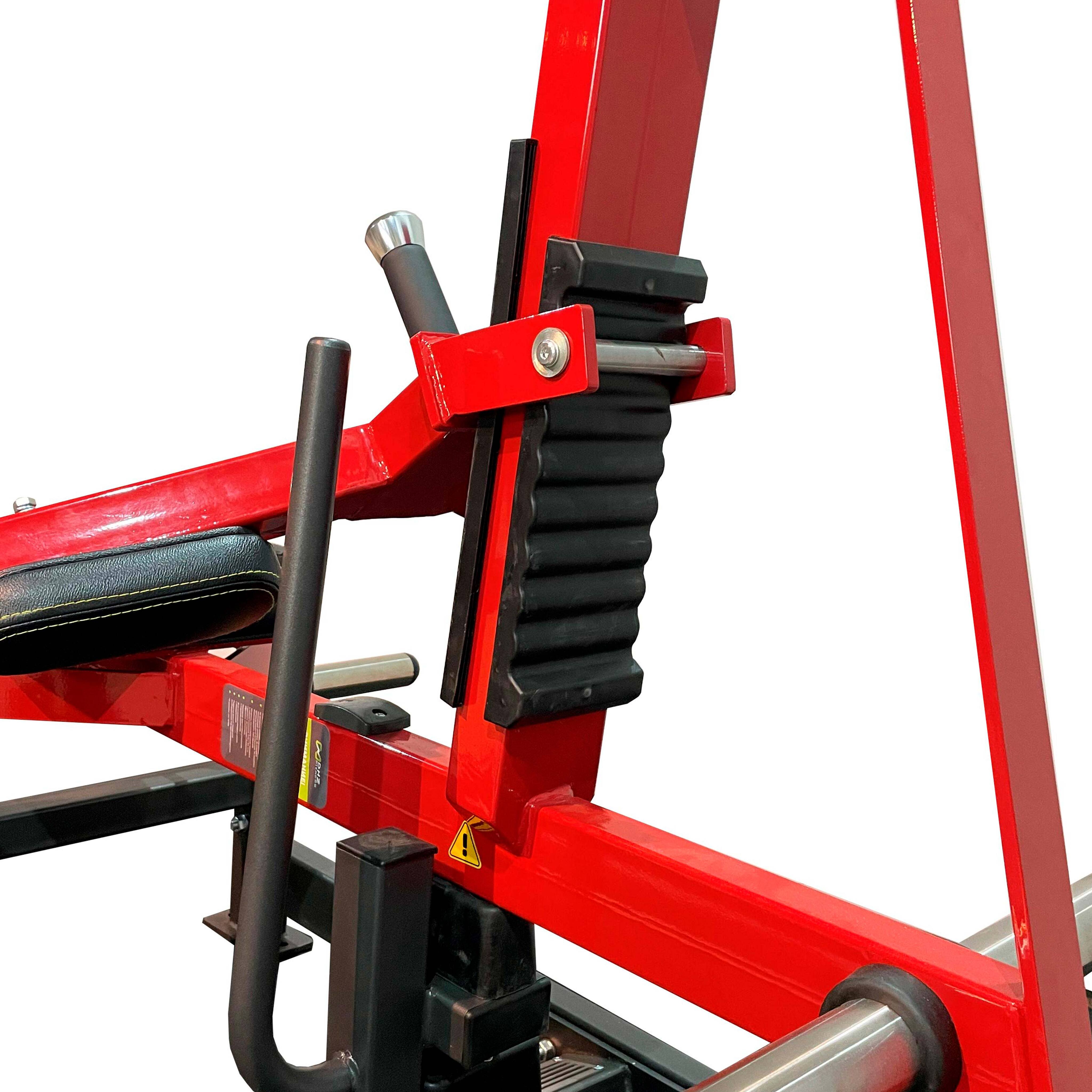 На раме закреплены металлические рубчатые пластины для защиты тренажера от износа и спортсмена от скольжения при выполнении упражнения.
