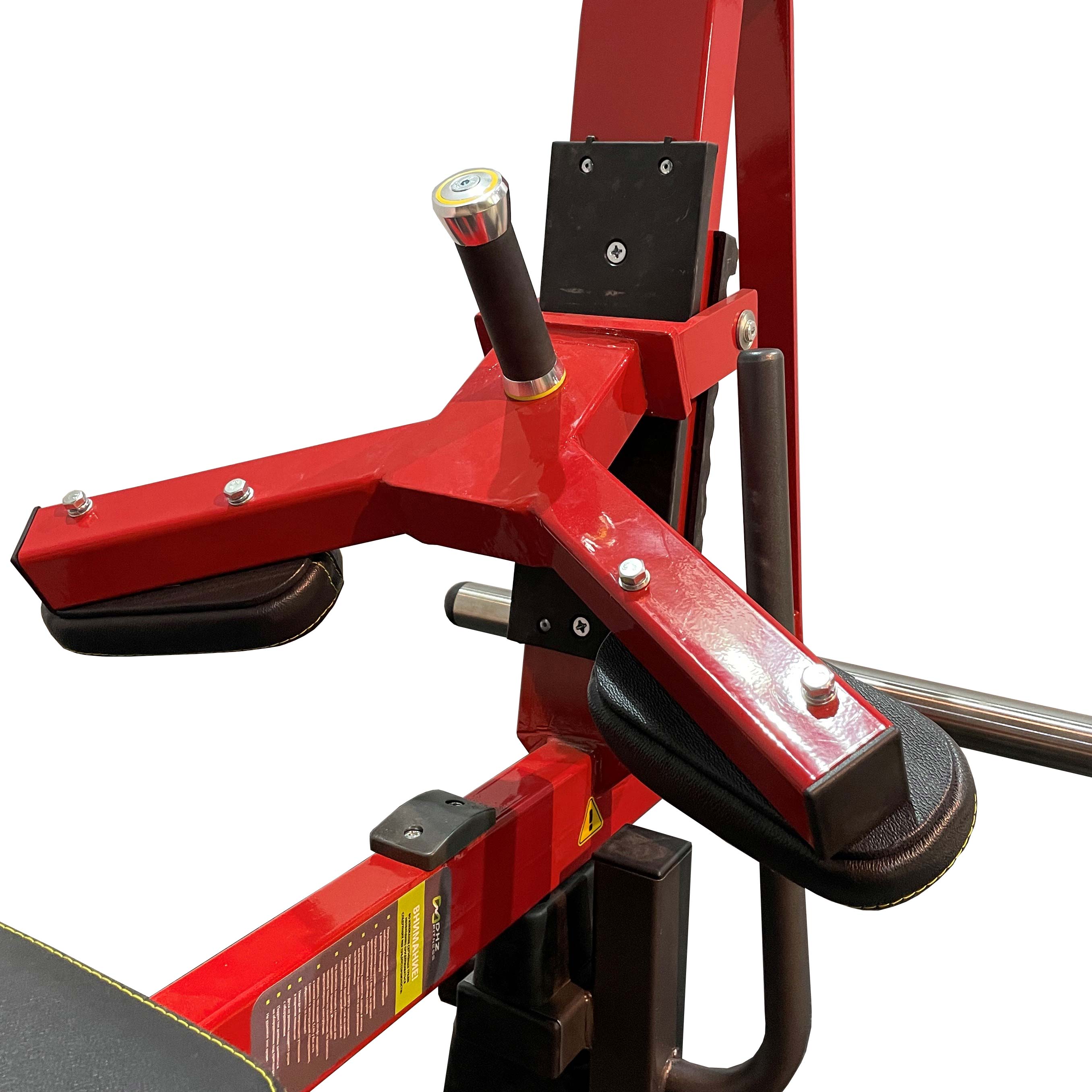 Тренажер имеет четыре опорные ножки из стального листа толщиной 5 мм с прорезями для надежного крепления к полу и резиновыми накладками для устойчивого положение и безопасности спортсмена.