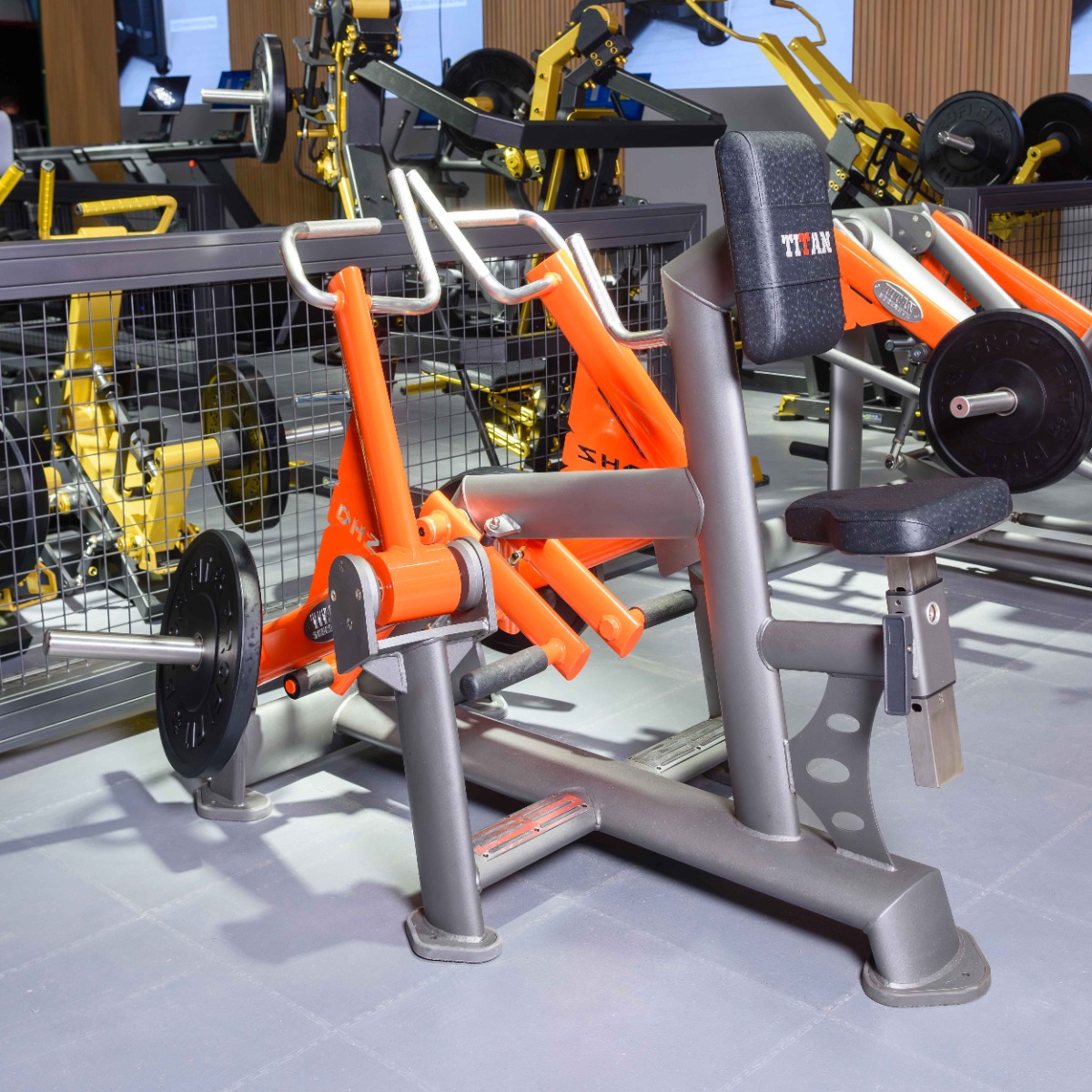 Профессиональный тренажер для коммерческого использования T902 Наклонная тяга предназначен для развития широчайших, трапециевидных, ромбовидных мышц спины, задних дельт.