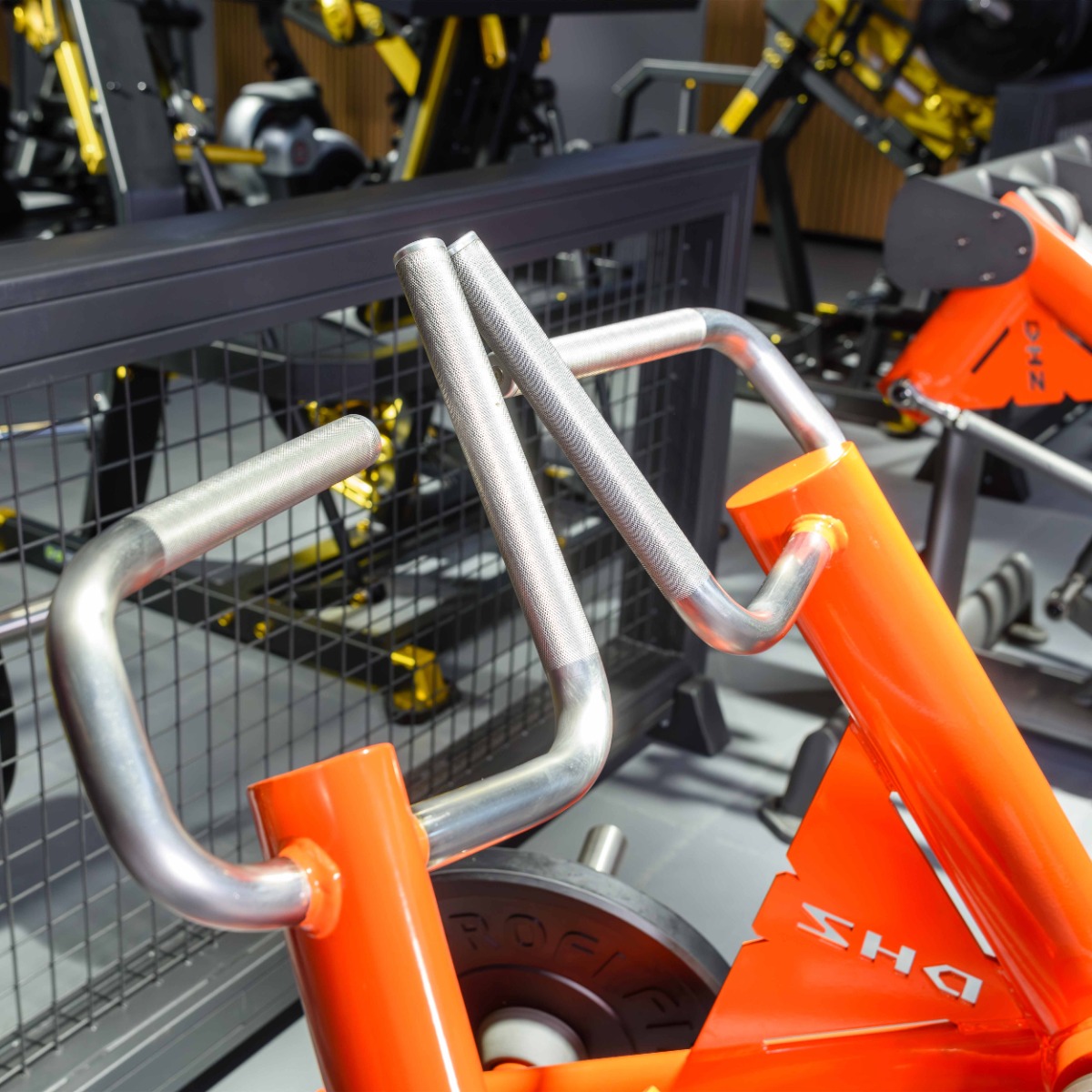 Парные рукояти для горизонтального и вертикального хвата длиной 420 мм и 440 мм, диаметром 30 мм выполнены из хромированной стали. Рабочая зона оснащена равномерной перекрёстной накаткой, обеспечивающей надёжный хват при выполнении упражнений.