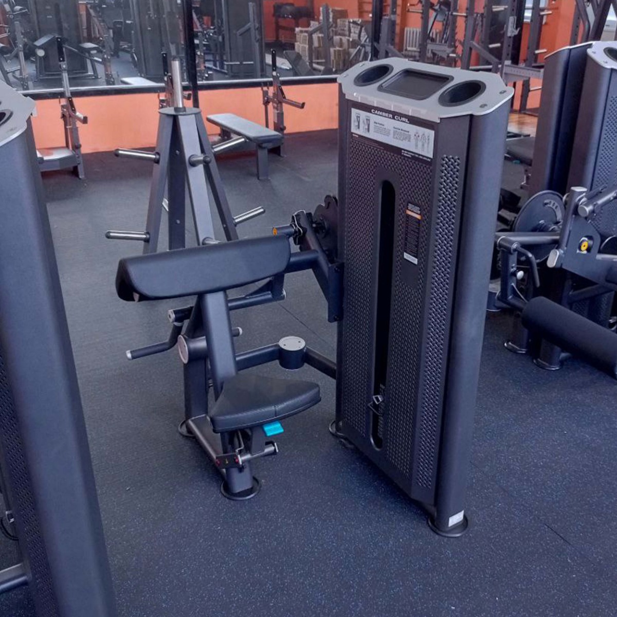 Металлическая перфорированная защита весового стека с лицевой стороны и сплошная защита с задней стороны выполнена из листового металла толщиной 2 мм. Ребра жесткости у основания, примыкающие к несущей раме через скрытое болтовое соединение сечением 6 мм в восьми точках, повышают эксплуатационные параметры тренажера.