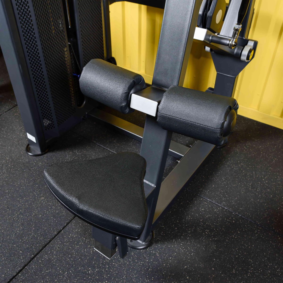 Металлическая, перфорированная защита весового стека с обеих сторон, выполнена из листового метала толщиной 2мм, с ребрами жесткости у основания, примыкает к несущей раме через скрытое болтовое соединение сечением 6мм в 8 точках, что повышает эстетические и эксплуатационные параметры тренажера.
