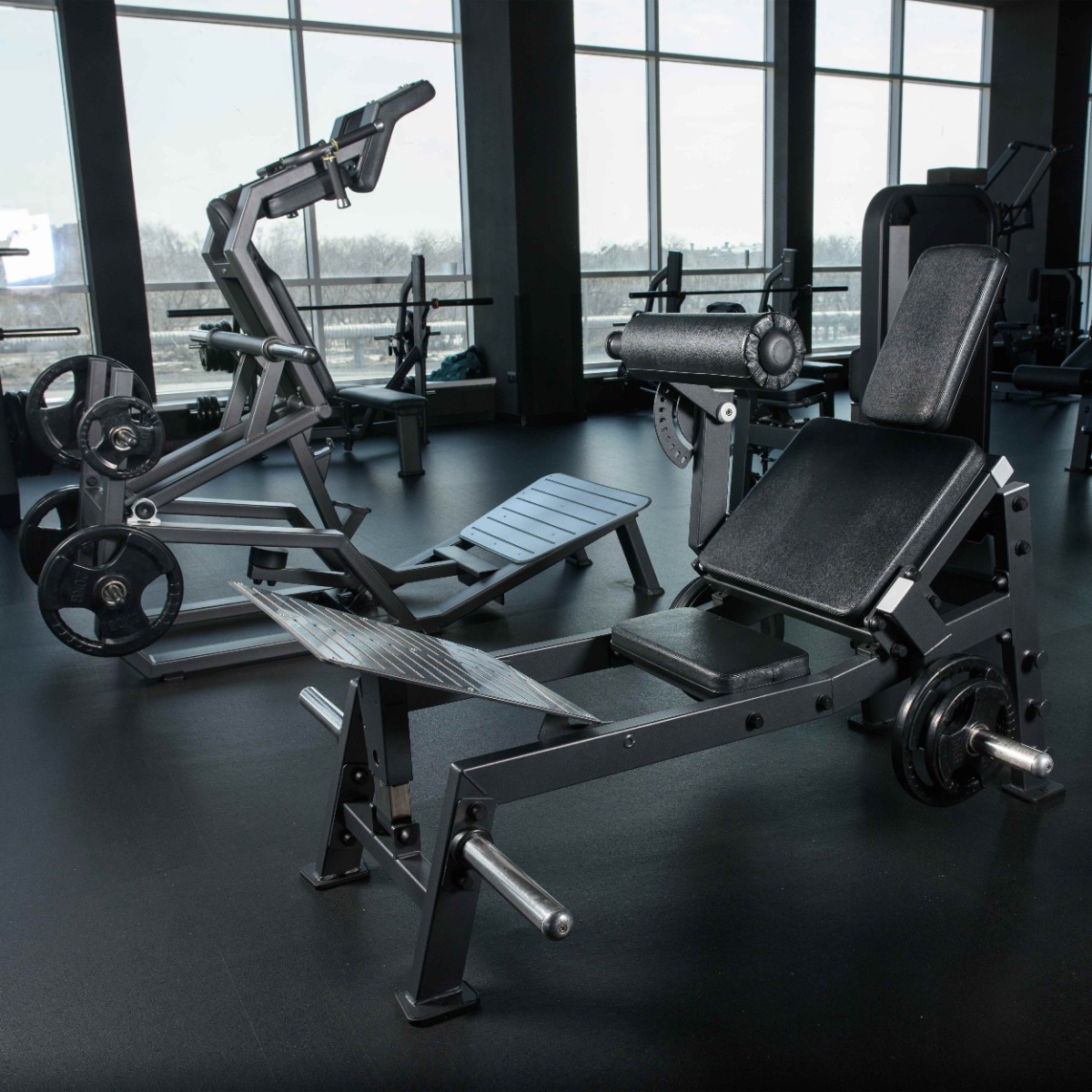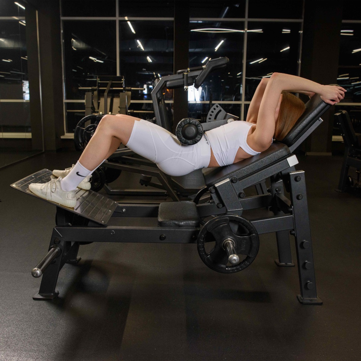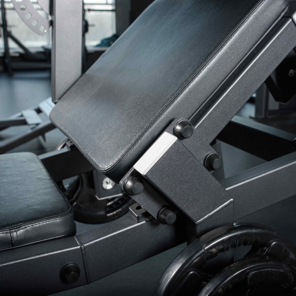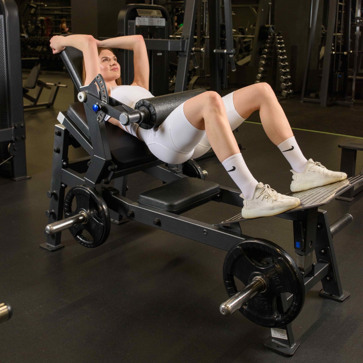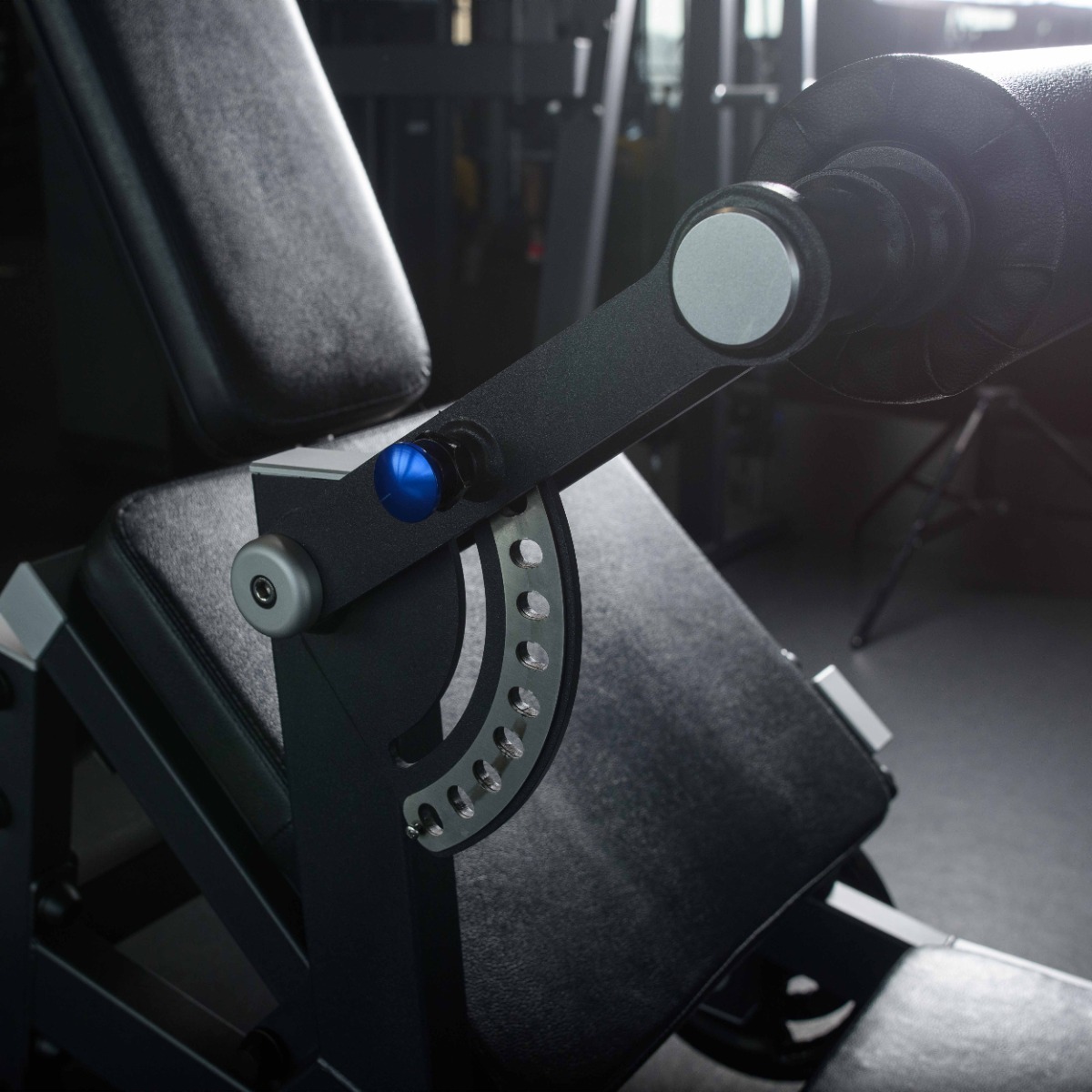 Опора для ног расположена под оптимальным углом для устойчивого положения атлета во время тренировки.