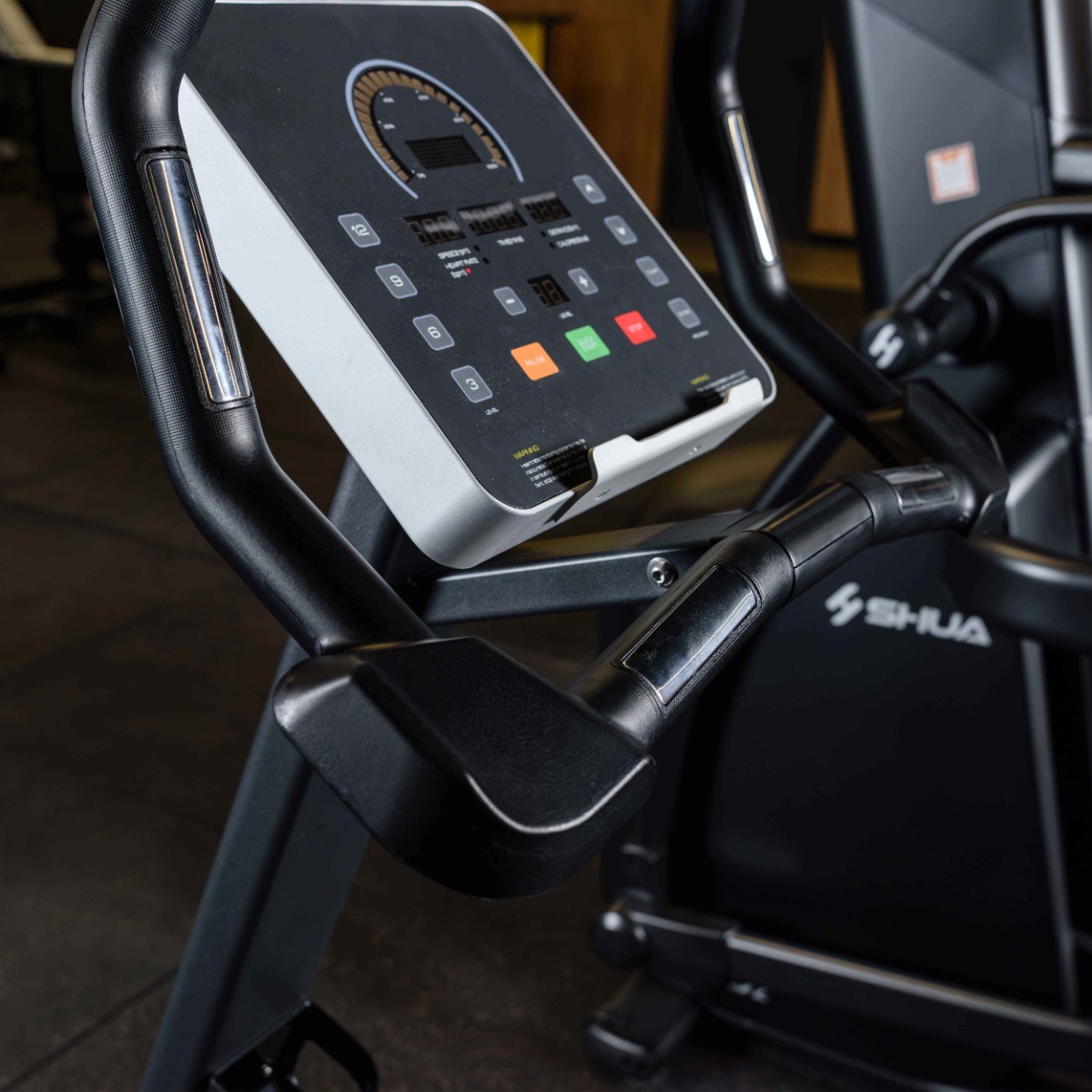 Профессиональный Велотренажер вертикальный DHZ A-5200 предназначен для высокоинтенсивной аэробной нагрузки и длительного непрерывного использования. Силовая конструкция тренажера (рама) выполнена из стального профиля 120×50 мм с большим радиусом угла. Рама покрыта двухслойным порошковым напылением в электростатическом поле для обеспечения максимального сцепления и структурной прочности. На кардиотренажере установлен бесщеточный генератор, значительно увеличивающий время работы между интервалами технического обслуживания. Не требует подключения к сети. Во всех узлах вращения и качения применяются высококачественные подшипниковые узлы. Электромагнитная система нагрузки позволяет выбрать оптимальную нагрузку в диапазоне от 1 до 20 уровней. Многопозиционный руль диаметром 32 мм расположен под оптимальным углом с возможностью выбора высоты хвата. На руле установлено две пары датчиков пульса: два расположены горизонтально, два – вертикально. Комфортное широкое седло выполнено из вспененного полиуретана с обивкой из премиальной искусственной кожи. Седло обеспечивает ровную посадку, при этом позволяет включать в работу верхнюю часть тела во время выполнение упражнения. Регулируется вертикально в 11 положениях, шаг 20 мм. Педали велотренажера выполнены из высокопрочного пластика с обрезиненным покрытием. Для надежной фиксации стоп поверхность педалей имеет линейный протектор и ремни из эластичного пластика 345×44 мм с восьмью регулировочными отверстиям 14×5 мм. На тренажере установлен буквенно-цифровой информационный светодиодный LED-дисплей. Дисплей отображает: скорость, частоту сердечных сокращений, время тренировки, дистанцию, израсходованные калории. Тренажер имеет восемь пользовательских программ, клавиши быстрого старта и завершения тренировки, увеличения или снижения сопротивления, быстрого выбора уровня сопротивления «3», «6», «9» или «12». Держатель для бутылки или личных вещей выполнен из пластика, закреплён на рулевой колонке. На нижней металлической раме тренажере установлены транспортировочные ролики диаметром 60 мм для легкого перемещения в любую точку зала. Вес: 75 кг. Габариты: 1210×630×1540 мм. Вес в упаковке: 100 кг. Габариты в упаковке: 1380×710×1120 мм. Производитель: DHZ Fitness. Соответствует международным стандартам качества и безопасности, имеет TÜV-сертификат. Производитель оставляет за собой право на внесение изменений в конструкцию и комплектацию тренажера, не влияющих на его эксплуатационные качества.
