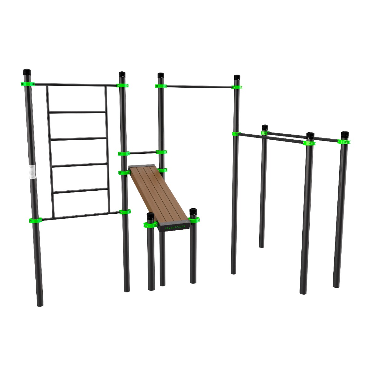 Уличный воркаут-комплекс W201 ZAVODSPORTA* предназначен для установки на уличных спортивных площадках с учетом интенсивной эксплуатации в разных климатических условиях.