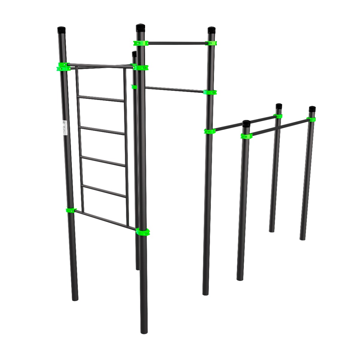 В состав комплекса входит семь опорных столбов: три высотой 3600 мм, один высотой 3300 мм, три высотой 2100 мм.