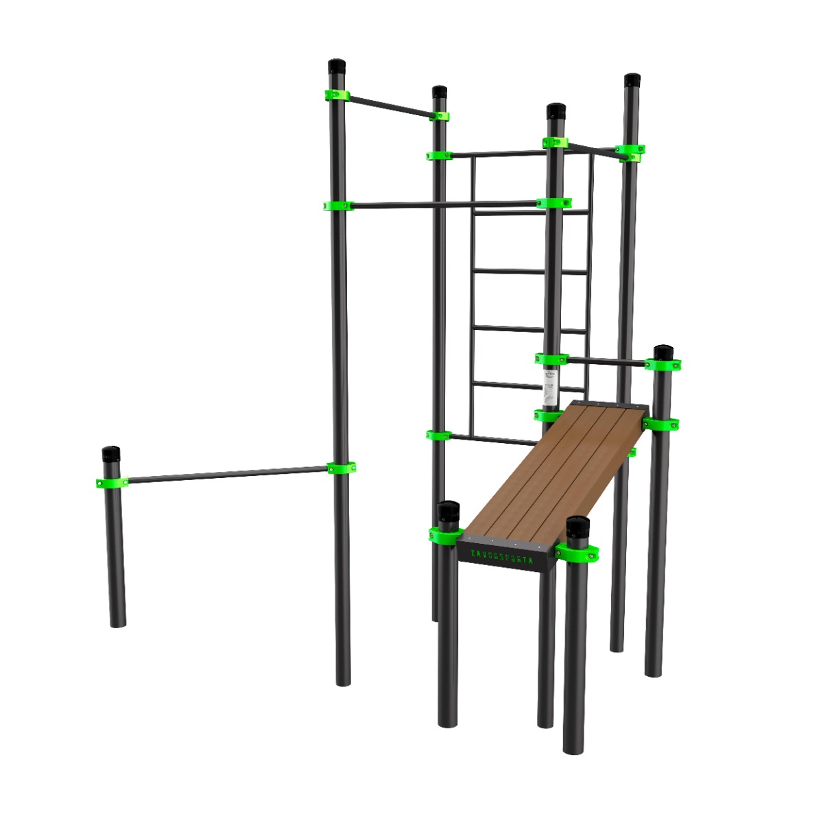 Уличный воркаут-комплекс W222 ZAVODSPORTA* предназначен для установки на уличных спортивных площадках с учетом интенсивной эксплуатации в разных климатических условиях.