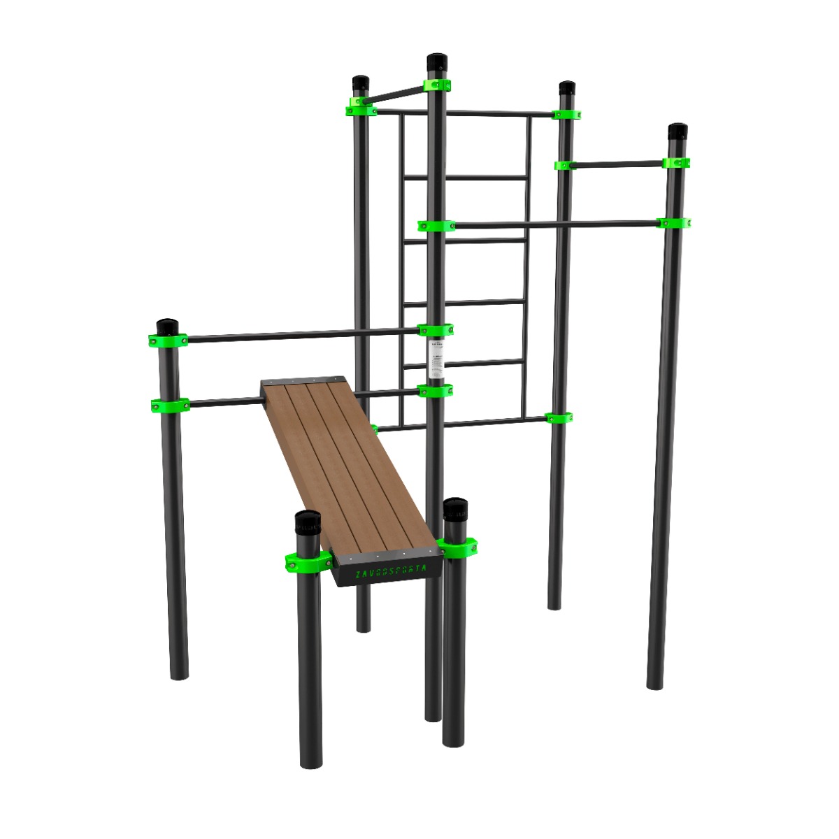 Уличный воркаут-комплекс W230 ZAVODSPORTA* предназначен для установки на уличных спортивных площадках с учетом интенсивной эксплуатации в разных климатических условиях.