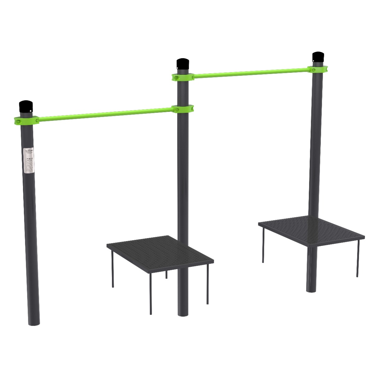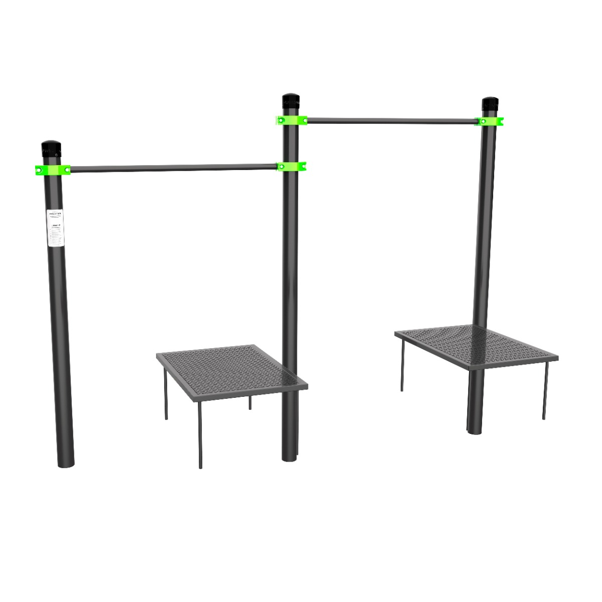 Уличные перекладины разноуровневые для подтягивания из виса лежа на низкой перекладине ZAVODSPORTA* предназначены для установки на уличных спортивных площадках с учетом интенсивной эксплуатации в разных климатических условиях.