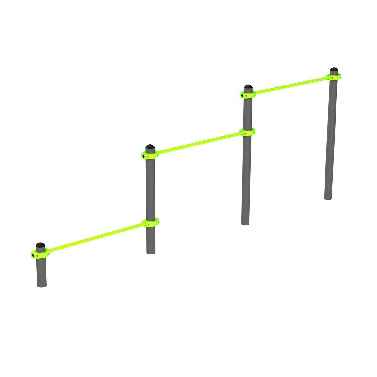 В состав комплекса входит четыре опорных столба: два высотой 2100 мм, один высотой 1700 мм и один высотой 1000 мм.