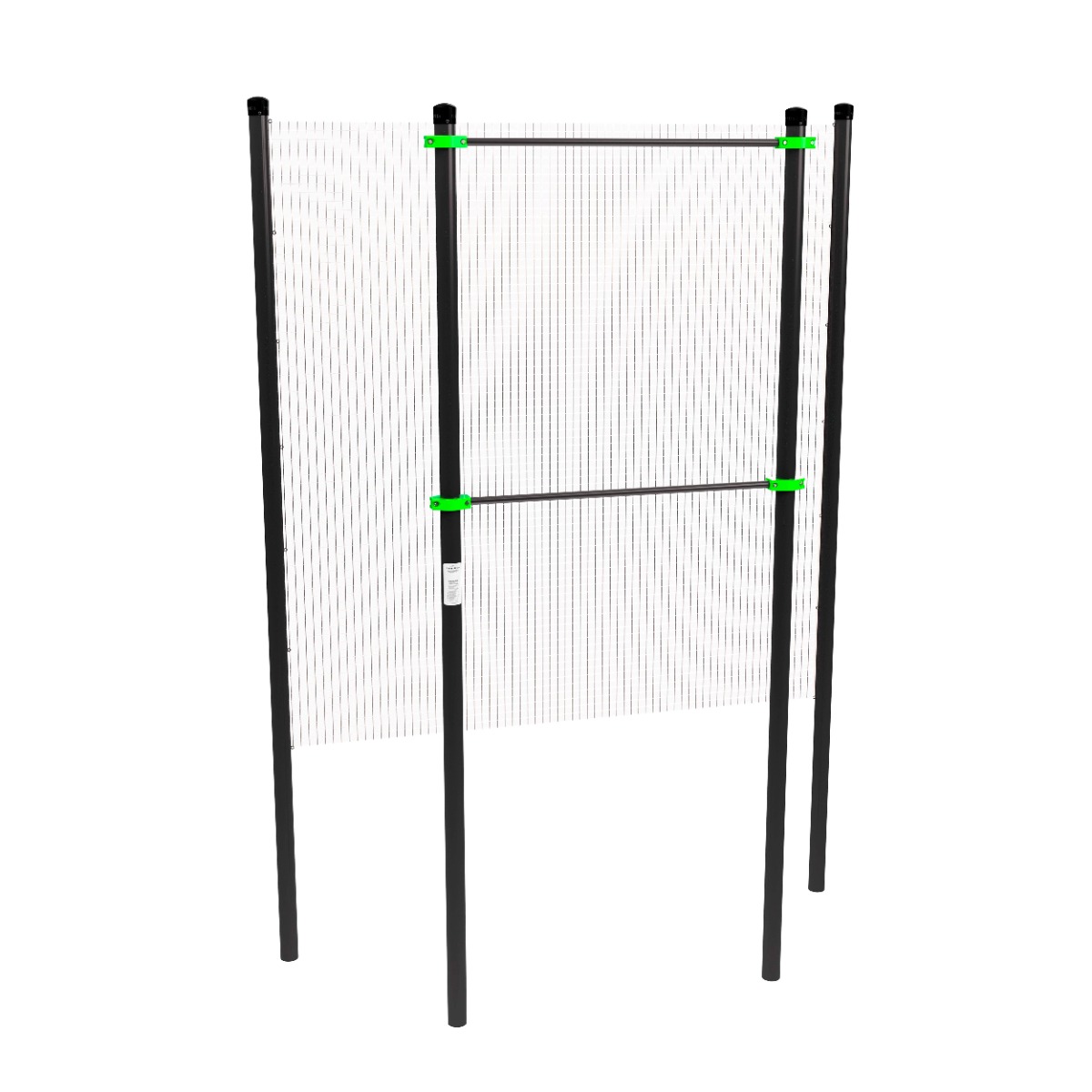 В состав комплекса входят четыре опорных столба: два высотой 4150 мм и два (с крепежом для сетки) высотой 4200 мм.
