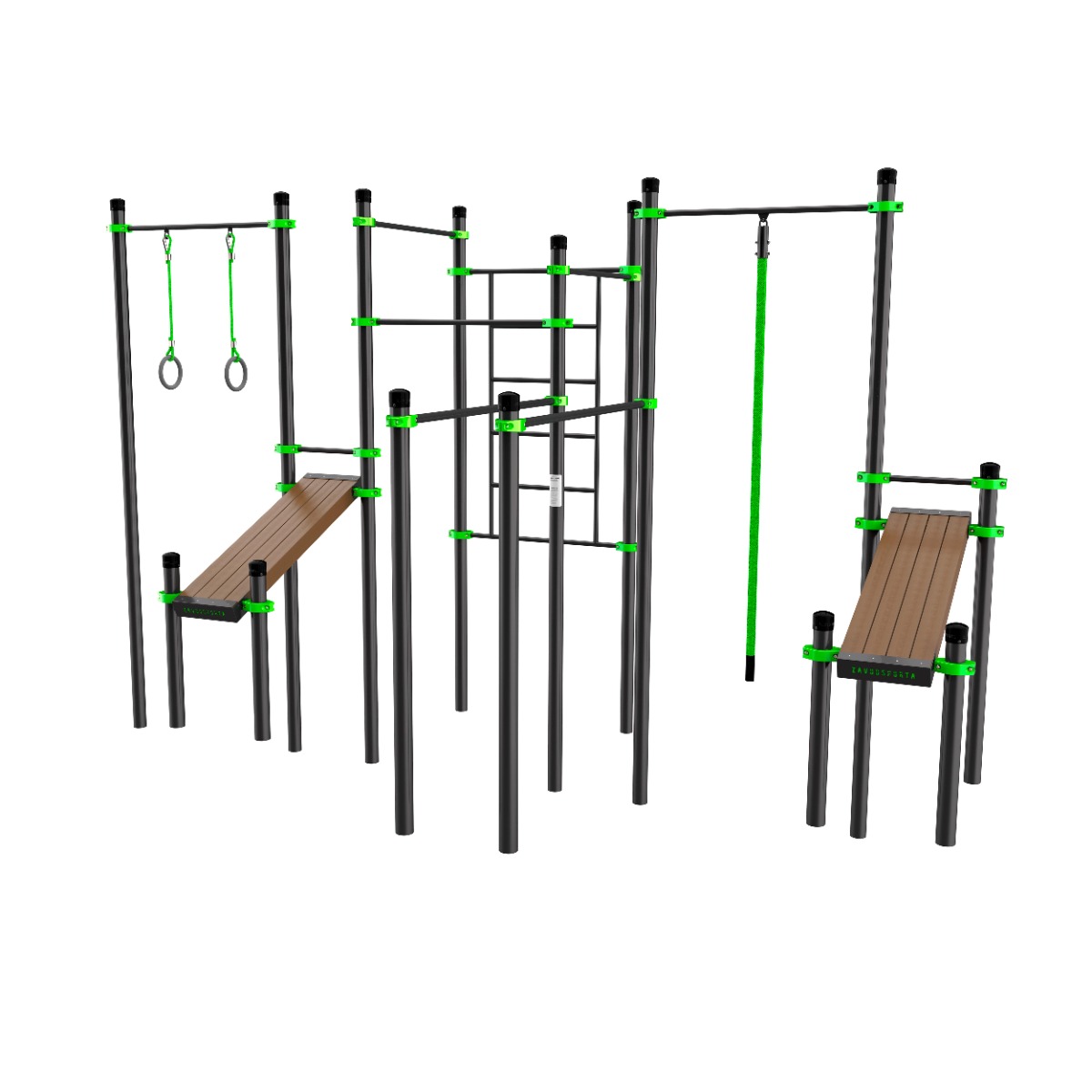 Уличный воркаут-комплекс W261 ZAVODSPORTA* предназначен для установки на уличных спортивных площадках с учетом интенсивной эксплуатации в разных климатических условиях.