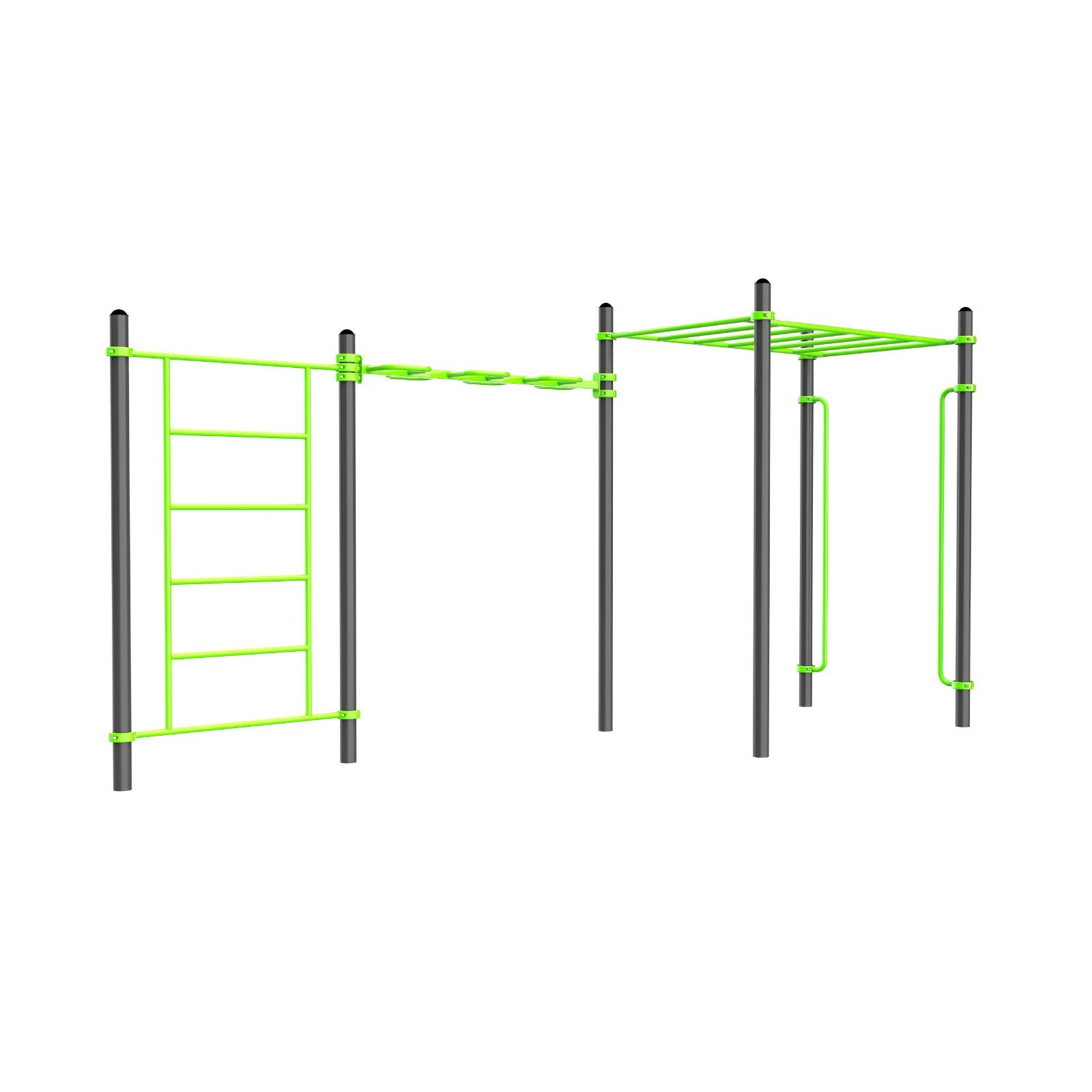 Перекладины шведской стенки, классического горизонтального рукохода, вертикальные перекладины выполнены из металлической трубы диаметром 34 мм с толщиной стенки 3,2 мм.