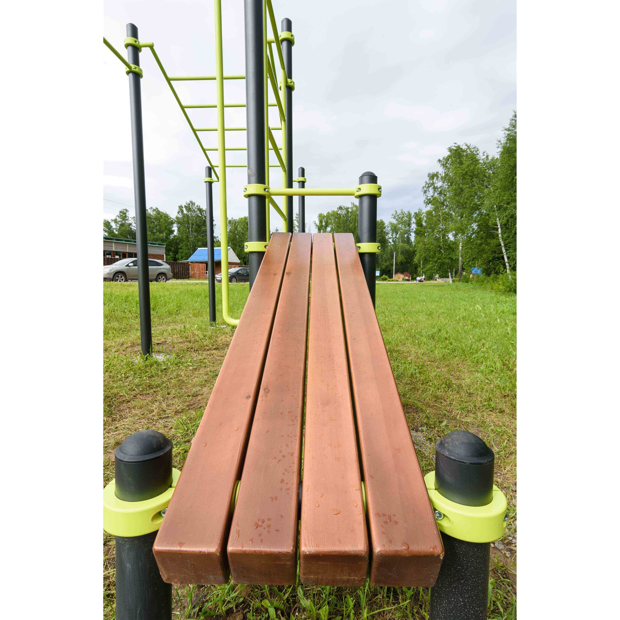 Перекладины брусьев выполнены из металлической трубы диаметром 42 мм с толщиной стенки 3,2 мм.