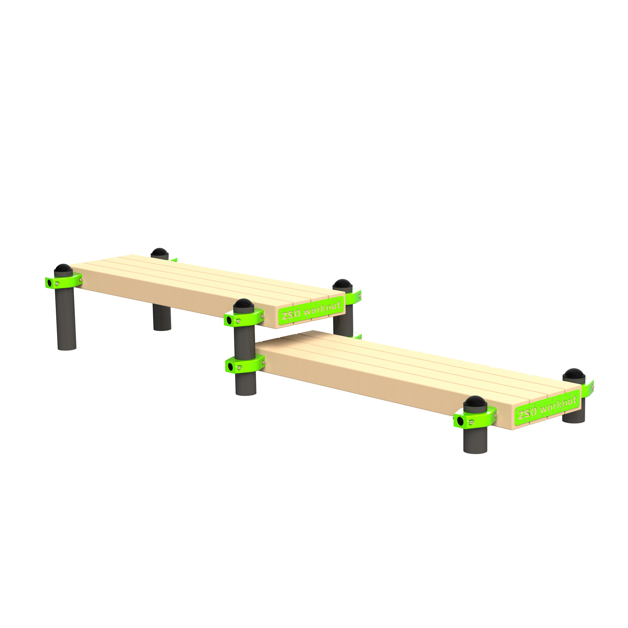 Уличная скамья гимнастическая горизонтальная разноуровневая (двойная) ZAVODSPORTA* предназначена для установки на уличных спортивных площадках с учетом интенсивной эксплуатации в разных климатических условиях.