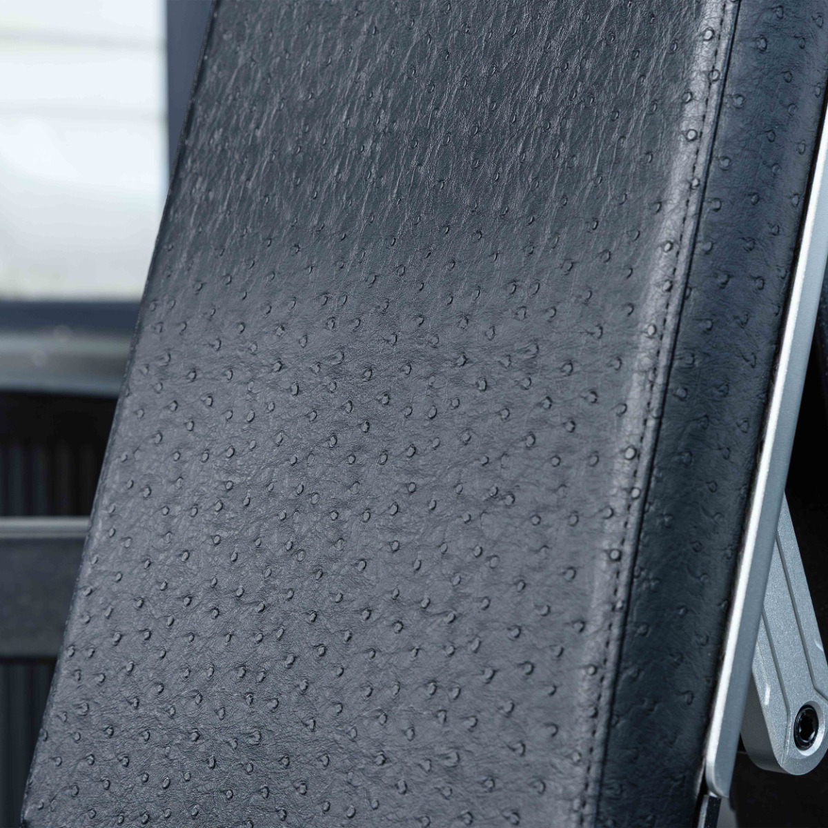 Сиденье и спинка выполнены из вспененного полиуретана, обивка из премиальной искусственной кожи с перфорацией. Рассчитано на длительную интенсивную эксплуатацию с сохранением эстетичного внешнего вида.