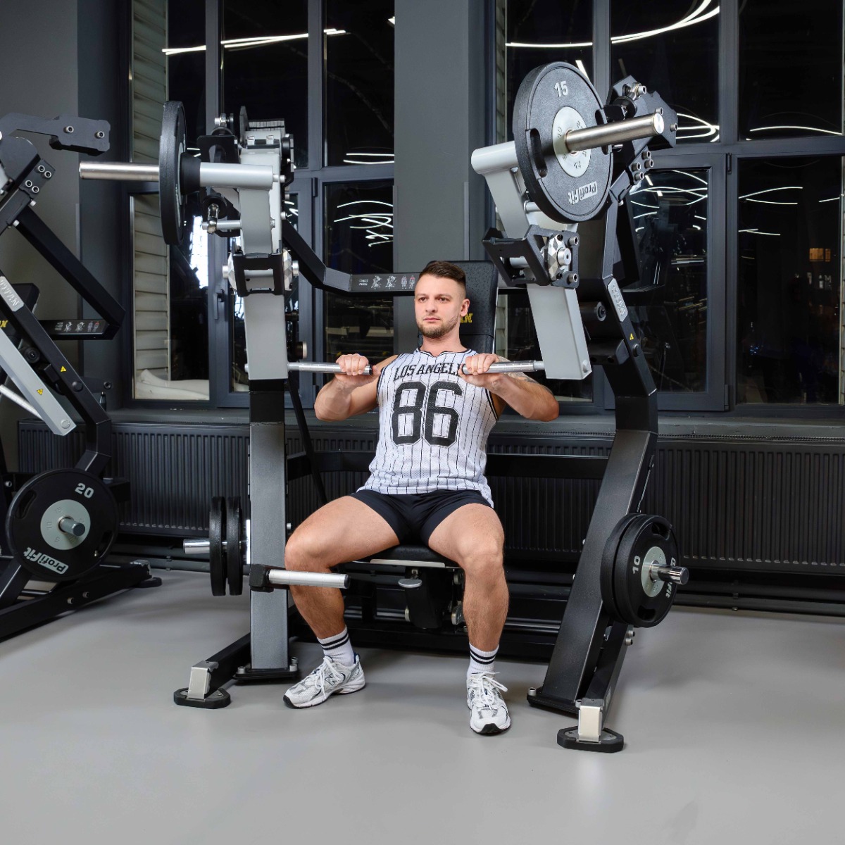 Профессиональный тренажер для коммерческого использования Y905ZAM Жим от груди предназначен для базовых упражнений на большие и малые грудные мышцы, а также дельты.