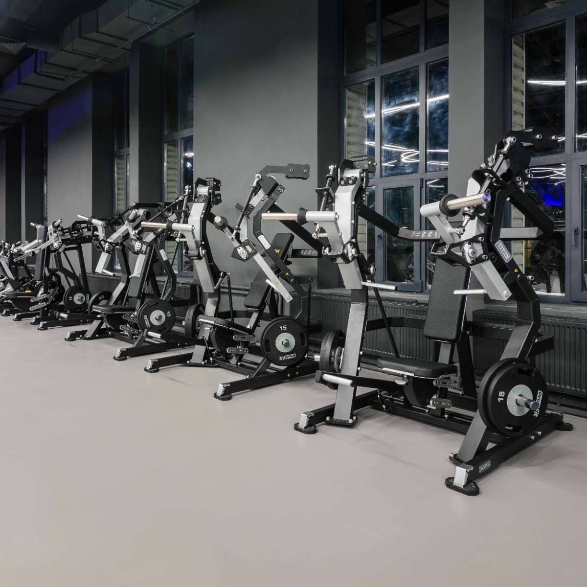 Накопители на подвижных рычагах и статичные для хранения оборудованы кольцами из плотной резины для предотвращения соприкосновения дисков с рамой тренажера и амортизации при размещении свободных весов на накопителях.
