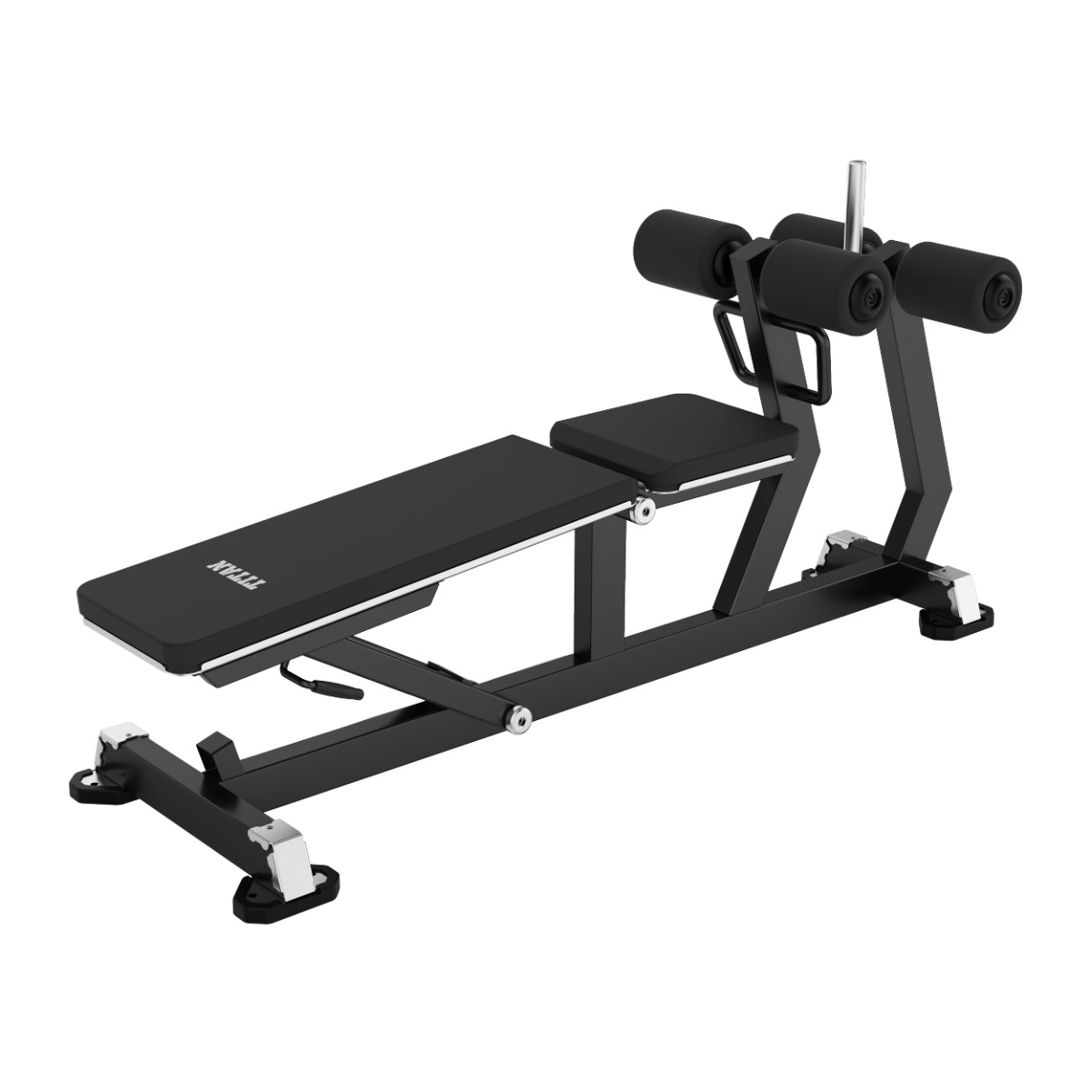 Раздельные сиденье и спинка, парные валики для фиксации ног выполнены из вспененного полиуретана, обладающего оптимальной жёсткостью, устойчивостью к деформации и способностью сохранять форму при длительной нагрузке. Обивка выполнена из премиальной искусственной кожи с дополнительным декоративным элементом с вышивкой «TITAN».